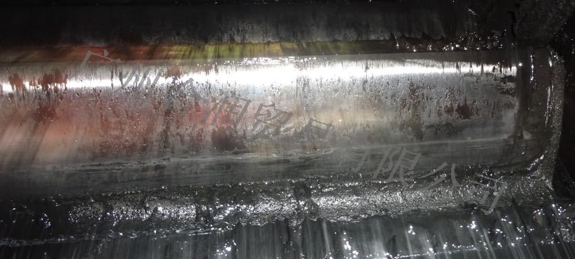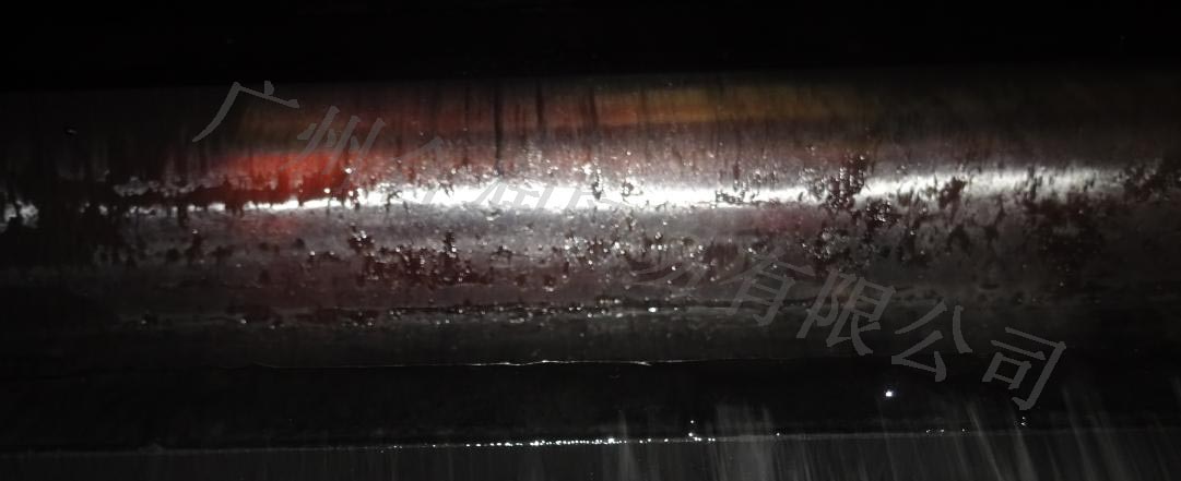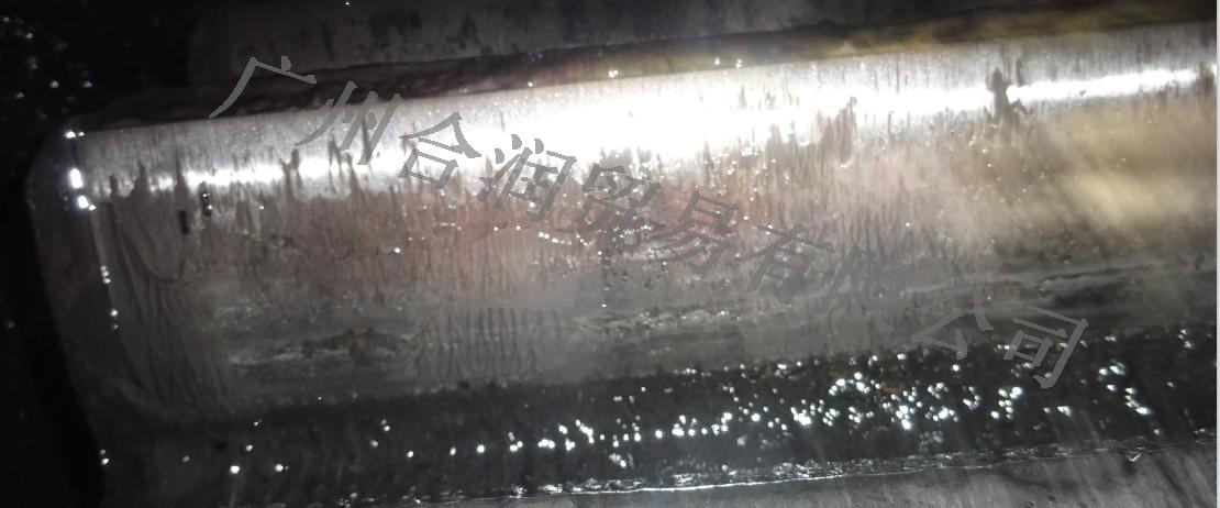 2、開(kāi)式齒輪潤(rùn)滑狀況:小齒齒面的潤(rùn)滑劑粘附量較少,處于欠潤(rùn)滑狀態(tài)。現(xiàn)場(chǎng)觀察潤(rùn)滑劑發(fā)現(xiàn)粘度較低,粘附性較差,如長(zhǎng)期使用會(huì)導(dǎo)致磨損加重,有齒面剝落甚至斷齒的風(fēng)險(xiǎn)。
