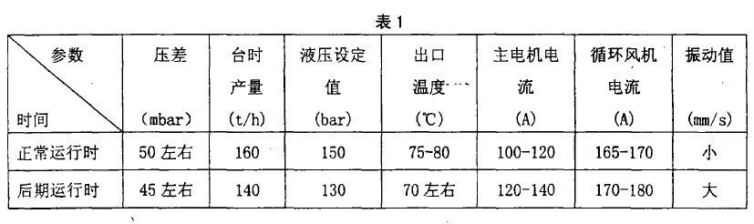 1 立磨正常運行及磨損后期運行時各參數(見表1)